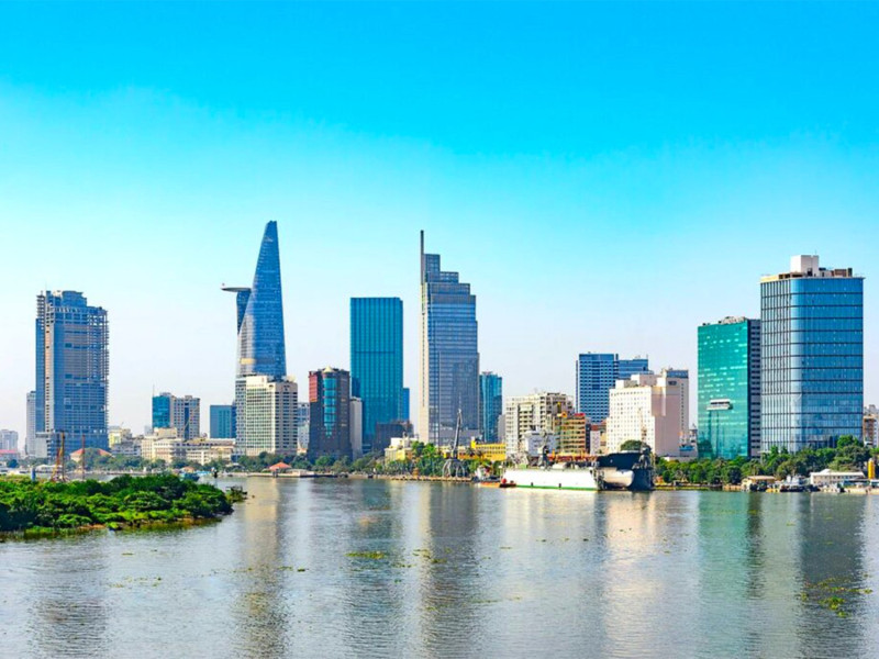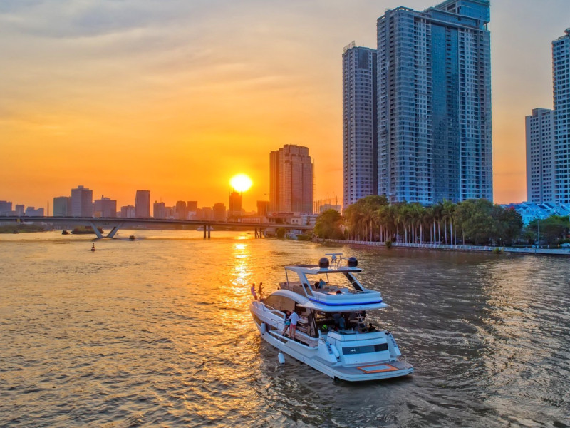 「サイゴン・ウォーターゴー」は、バクダン船着場からニャーゾン港、1区の中心にある「ビテクスコタワー」、ベトナムで一番高いビル「ランドマーク81」とその周りに建つ高層マンション群、2022年4月に完成・開通した「バーソン橋」などの主要スポットを通過しながら45分間クルーズします。ホーチミンの美しい夕景をお楽しみください。