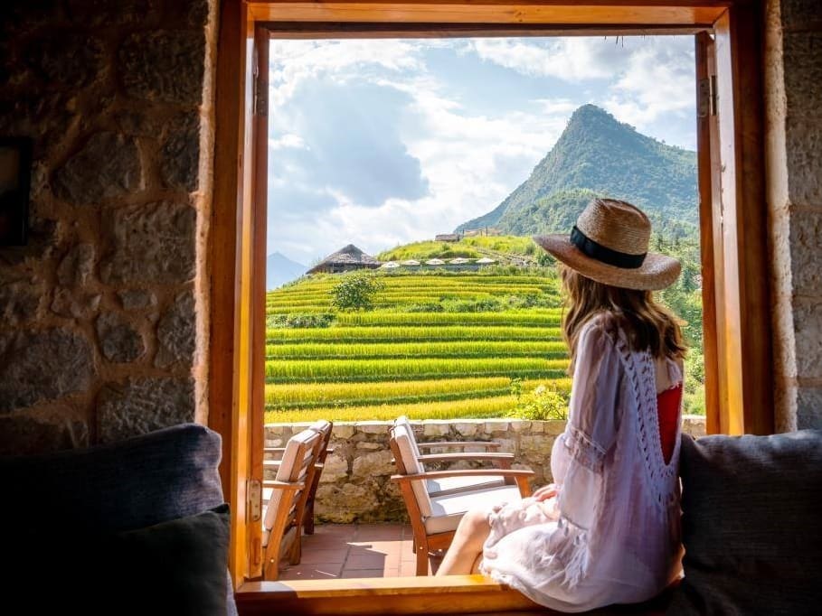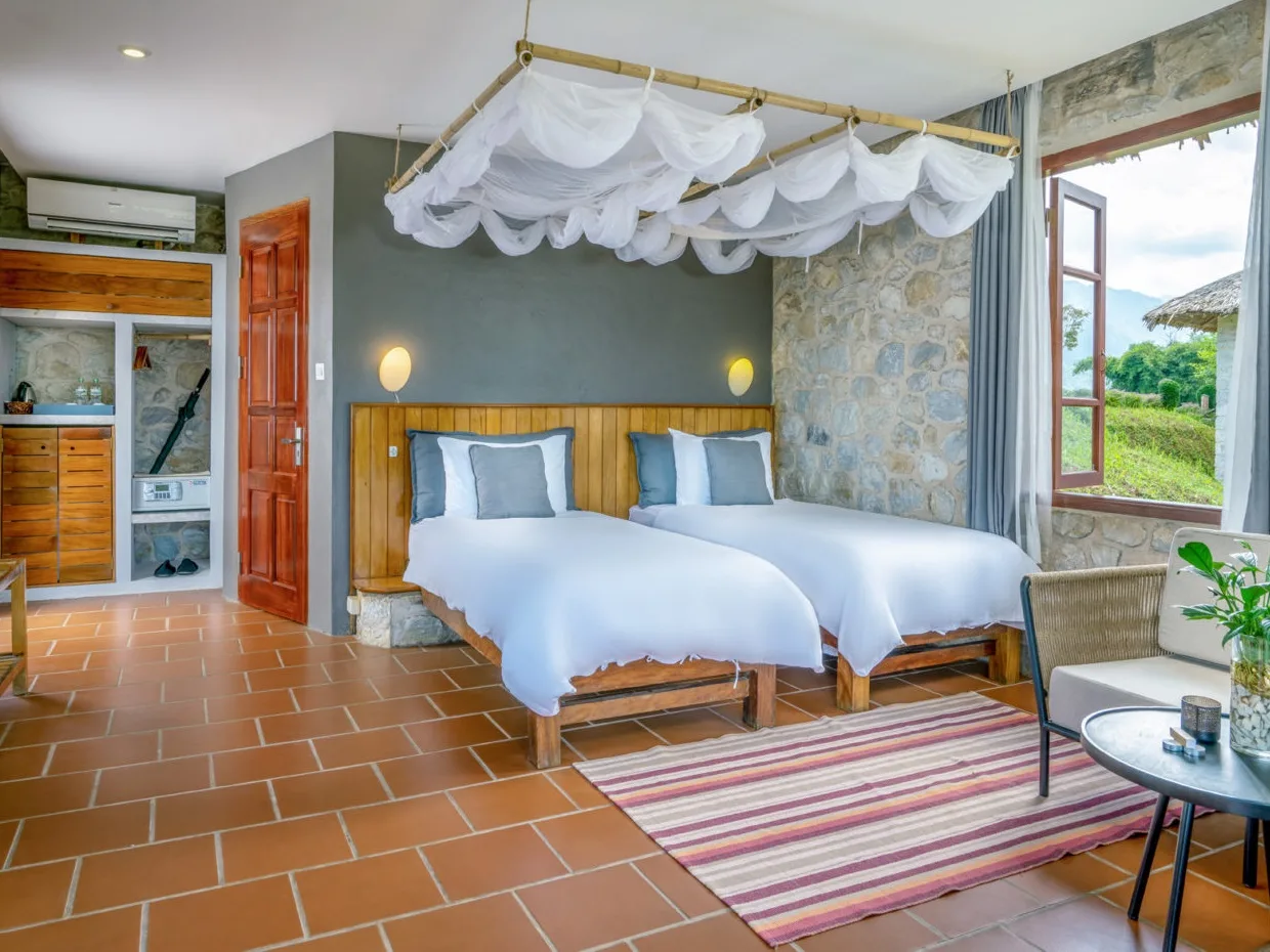 41のスタイリッシュなシャレーはそれぞれ、ニンビンのベトナム最高の石工チームの1人がホアンリエン山脈から彫った地元の白い花崗岩で作られています。シャレー内では、最高級の地元の素材を使用して、紛れもなくスカンジナビアの美学でクールなミニマリストのインテリアを提供しています。